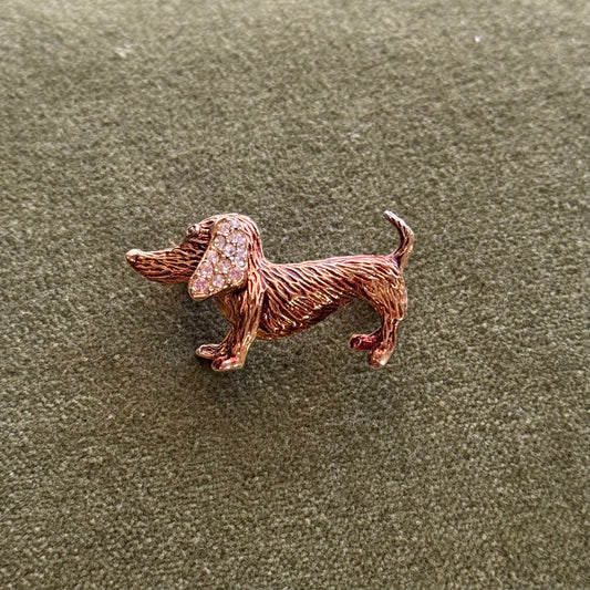Vintage Gold Tone Dachshund Brooch with Rhinestones - Sourced in Paris
