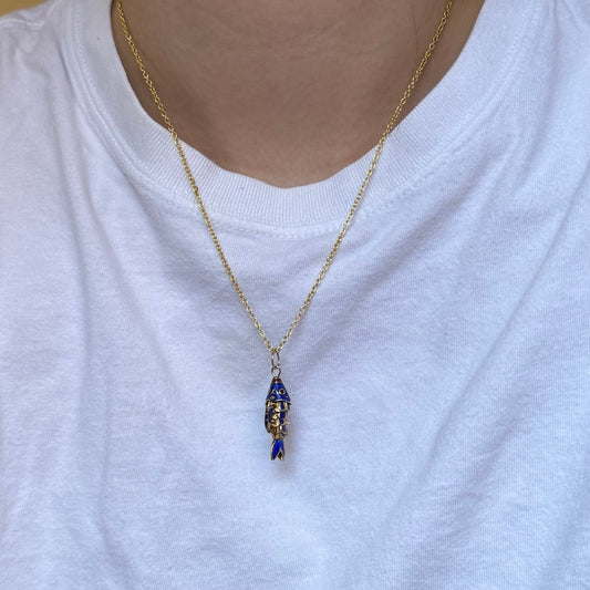 Vintage Gold Enamel Articulated Fish Necklace - Sourced in Paris