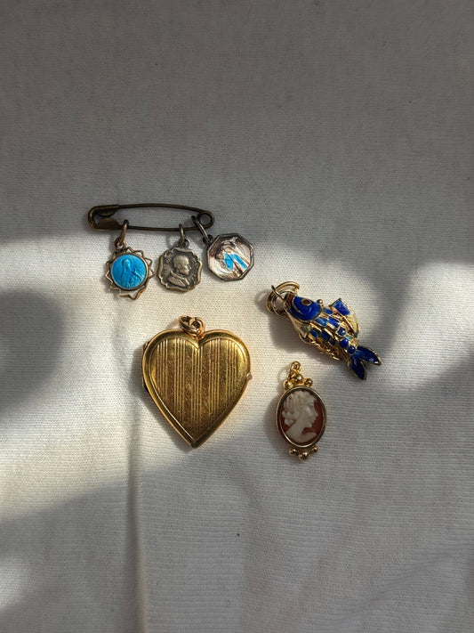 Vintage Gold Teal Enamel Mary Necklace - Sourced in Paris