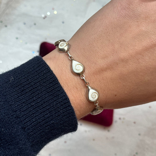 925 Sterling Silver Teardrop Shell Bracelet - Sourced in Greece