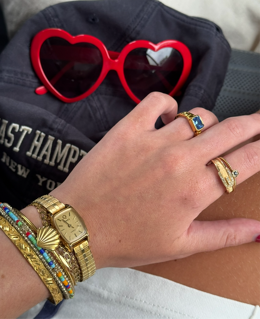Vintage Multicolor Beaded Gold Bangle Bracelet
