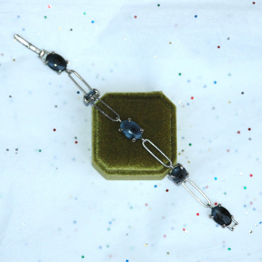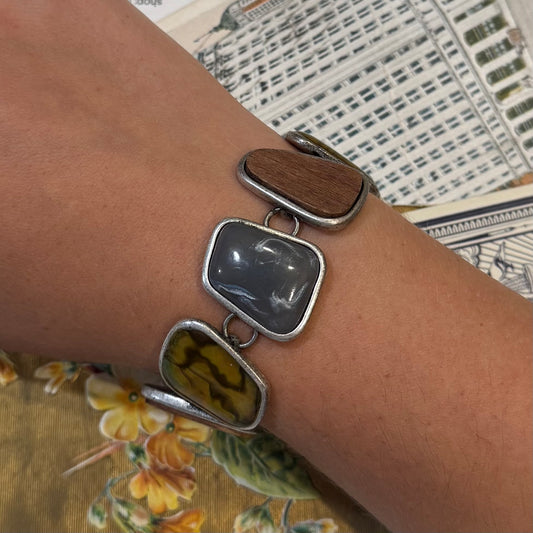 Vintage Silver Tone Abalone Shell, Stone, & Wood Bracelet
