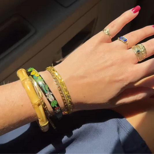 Vintage Enamel Cloisonné Floral Bangle Bracelet