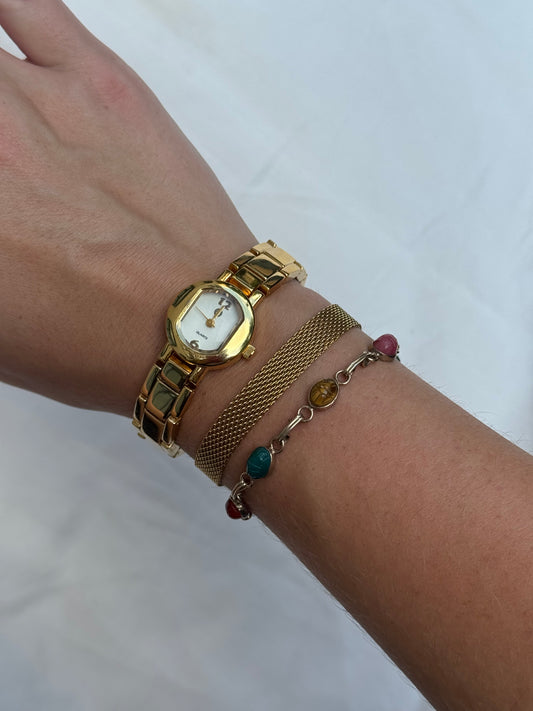Vintage Gold Tone Multicolored Stone Dainty Scarab Bracelet