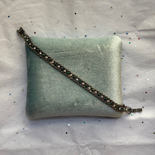 Vintage Silver Green Rhinestone Tennis Bracelet