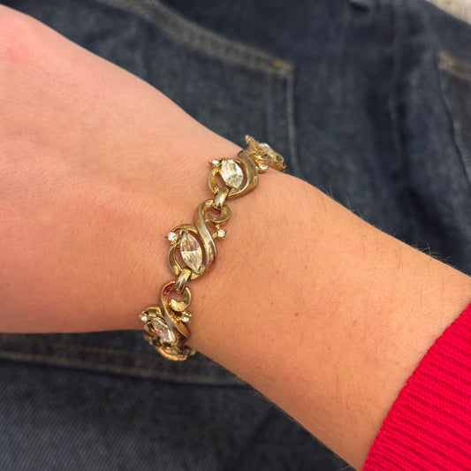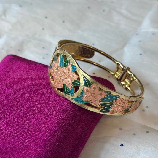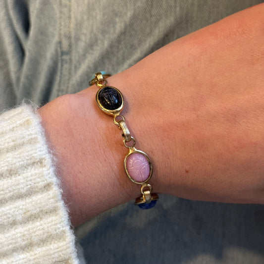 Vintage Gold Tone Multicolored Stone Scarab Bracelet