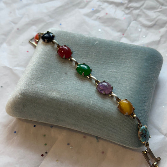 Vintage Silver Tone Multicolored Stone Scarab Bracelet
