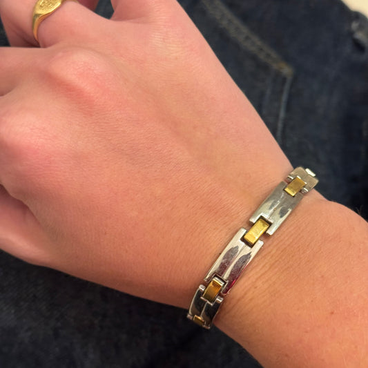 Vintage Wood & Inlay Brass & Silver Bangle Bracelet