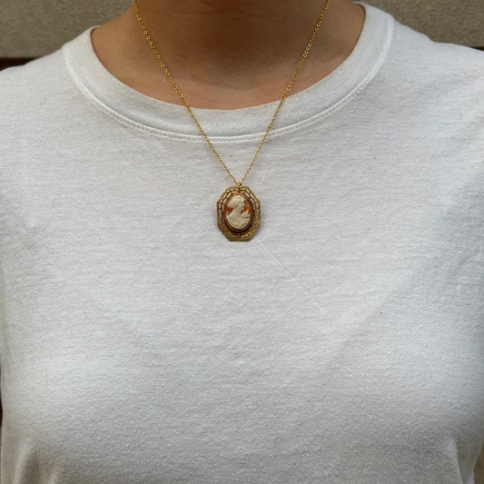 Vintage Gold Filled Cameo Filigree Pendant Necklace/Brooch, Victorian Style