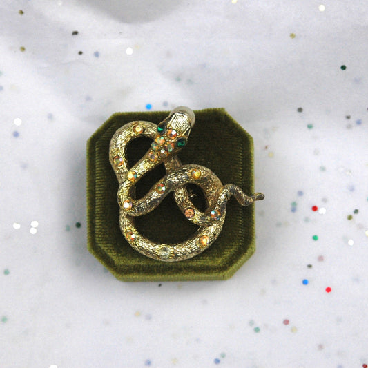 Vintage Gold Tone Avon Snake Rhinestone Pearl Brooch