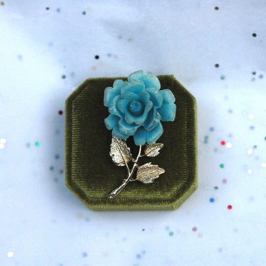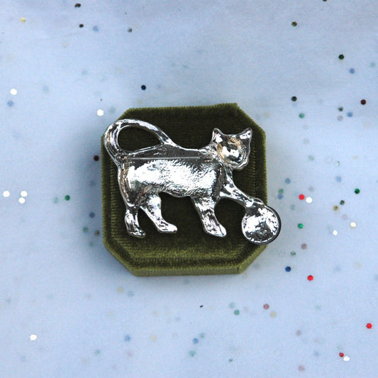 Vintage Silver Cat Playing with Blue Yarn Brooch