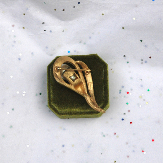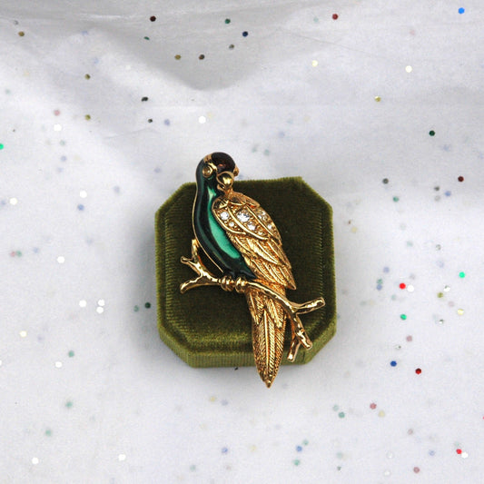 Vintage Gold Tone Avon Green Bird Rhinestone Brooch