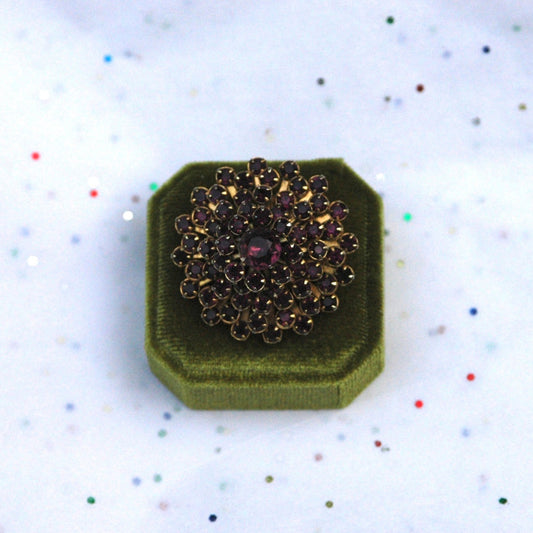 Vintage Gold Purple Cluster Rhinestone Brooch