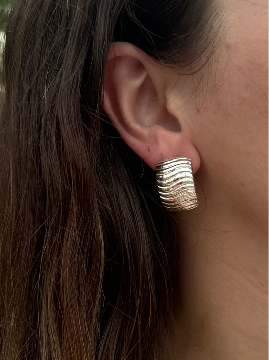 Vintage 1980s Givenchy Silver Tone Ribbed Hoop Post Earrings