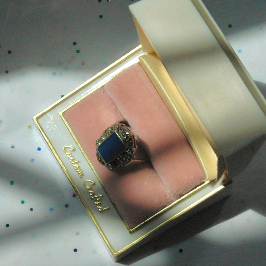 Vintage Sterling Silver Art Deco Ring with Blue Chalcedony and Marcasite