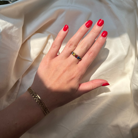 Vintage 10k Gold Multicolored Gemstone Braided Ring