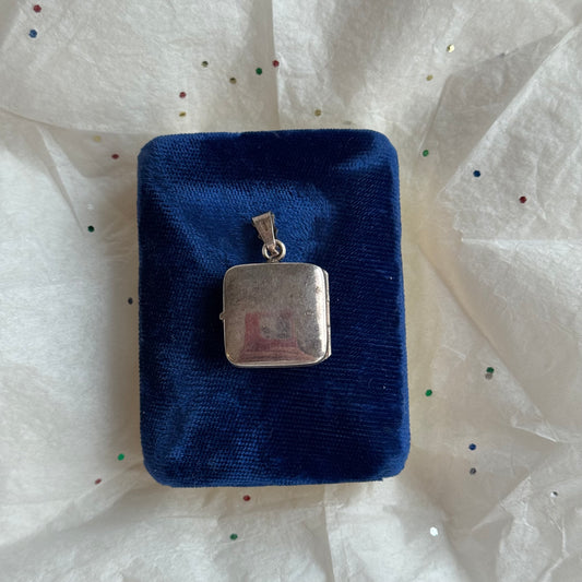 Vintage Sterling Silver Square Locket Pendant Necklace - Sourced in Paris