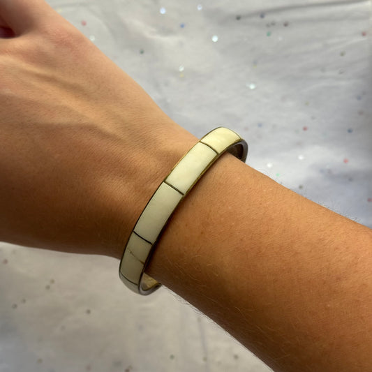 Vintage White Brass Bangle Bracelet
