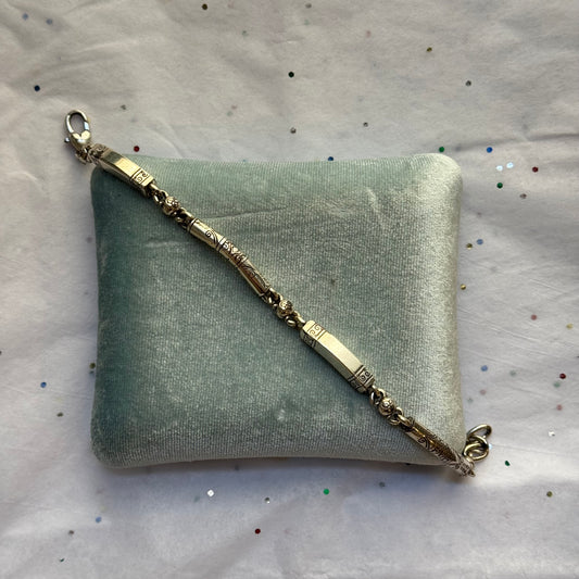 Vintage Engraved Silver Bar Bracelet