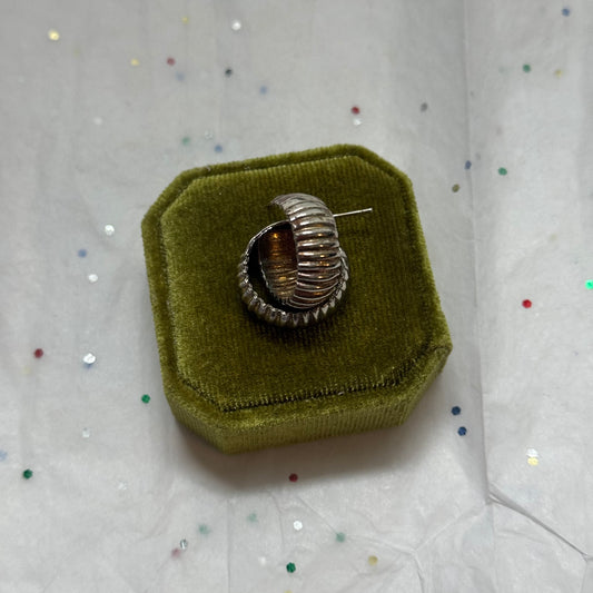 Vintage Ribbed Silver Hoop Earrings