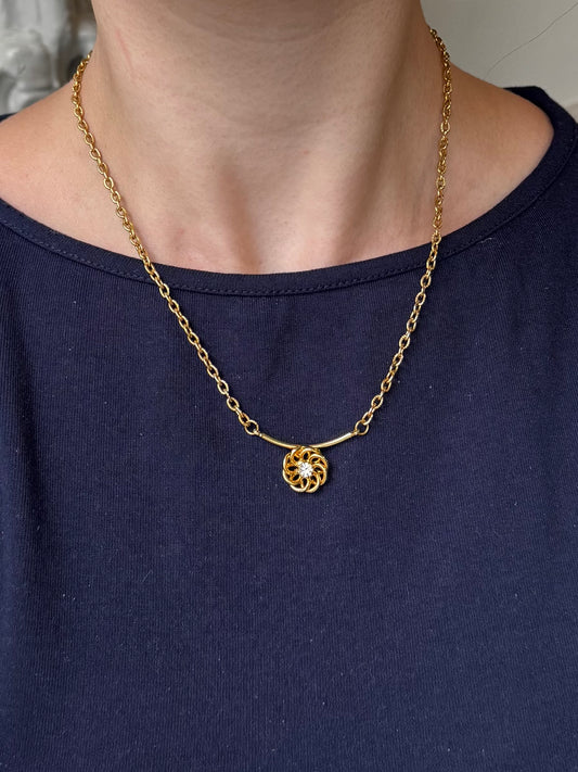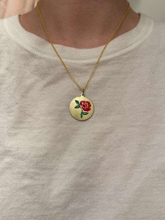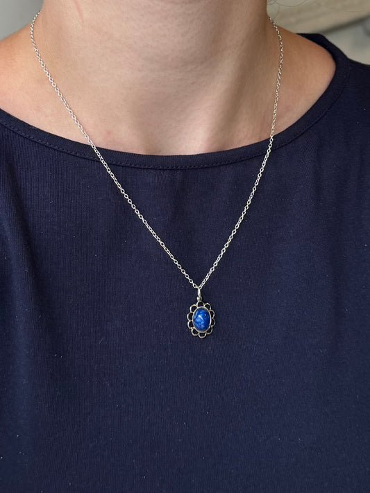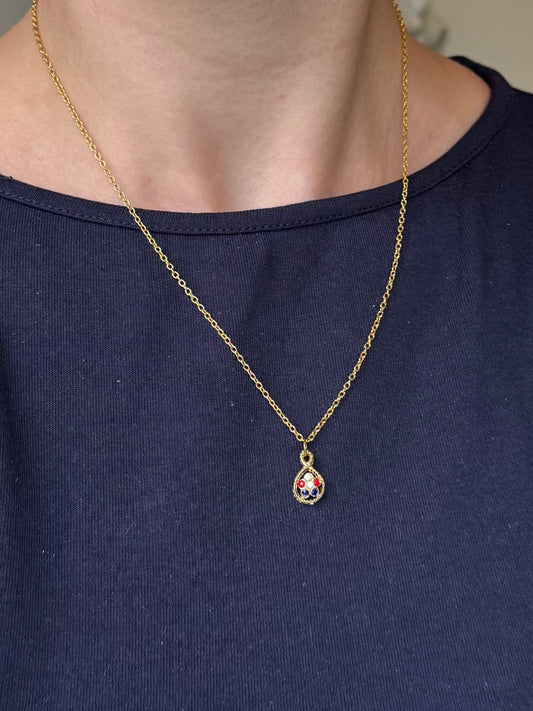 Vintage Red, White, & Blue Flower Pendant Necklace