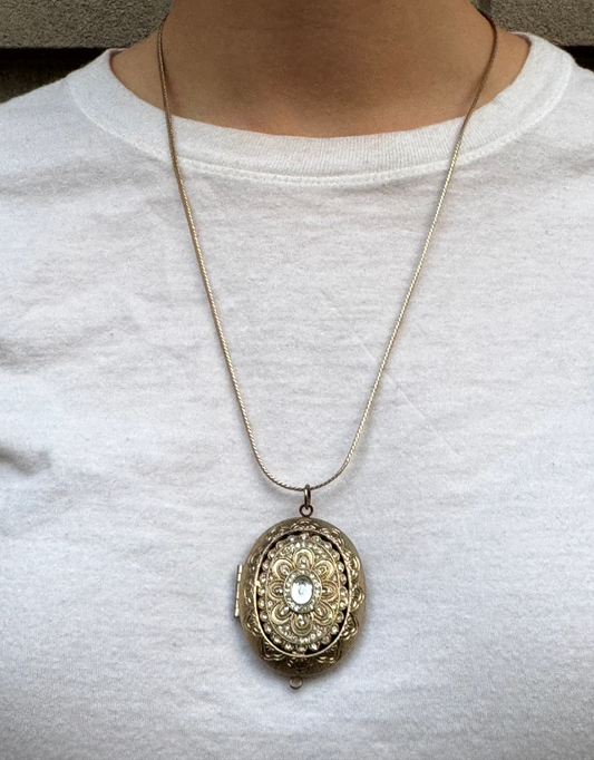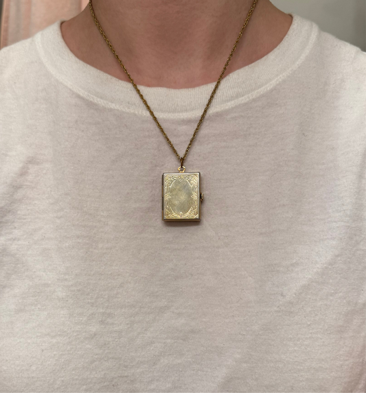 Vintage Gold Tone 4 Photo Square Locket Necklace