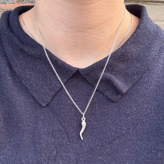 Vintage Sterling Silver Cornicello Pendant Necklace