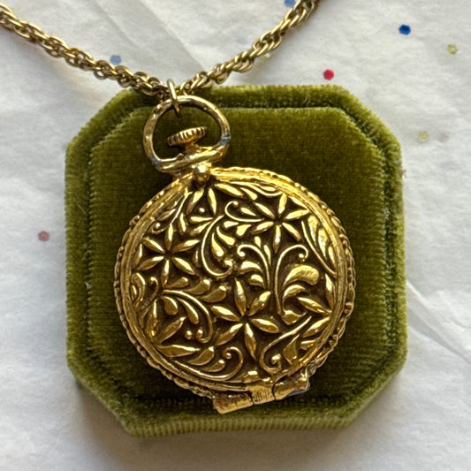 Vintage 1960s Floral Gold Tone Locket Necklace