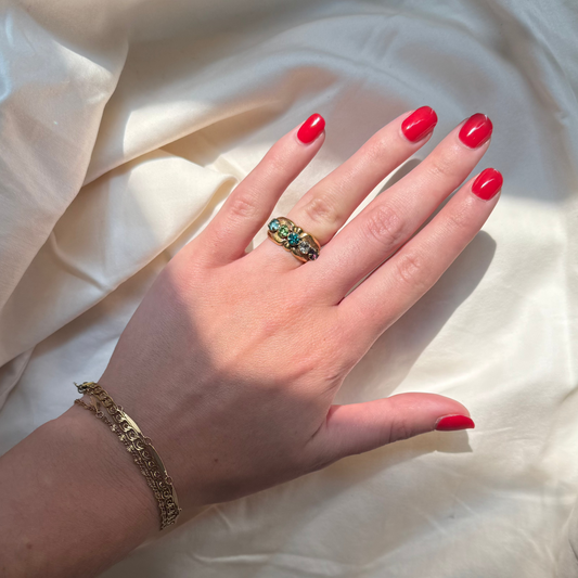 Vintage 10k Gold Multicolored Gemstone Braided Ring
