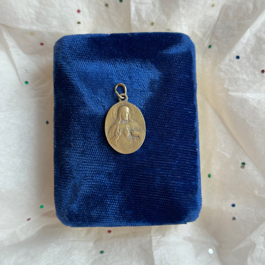 Vintage Gold Teal Enamel Mary Necklace - Sourced in Paris