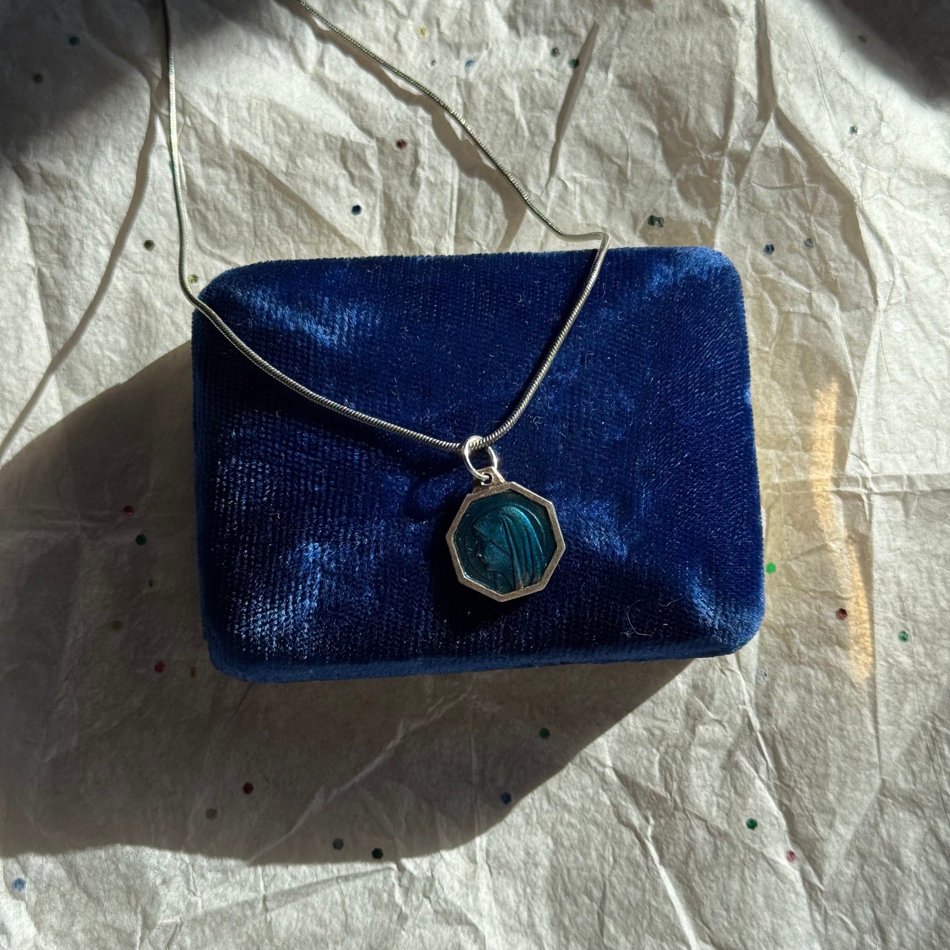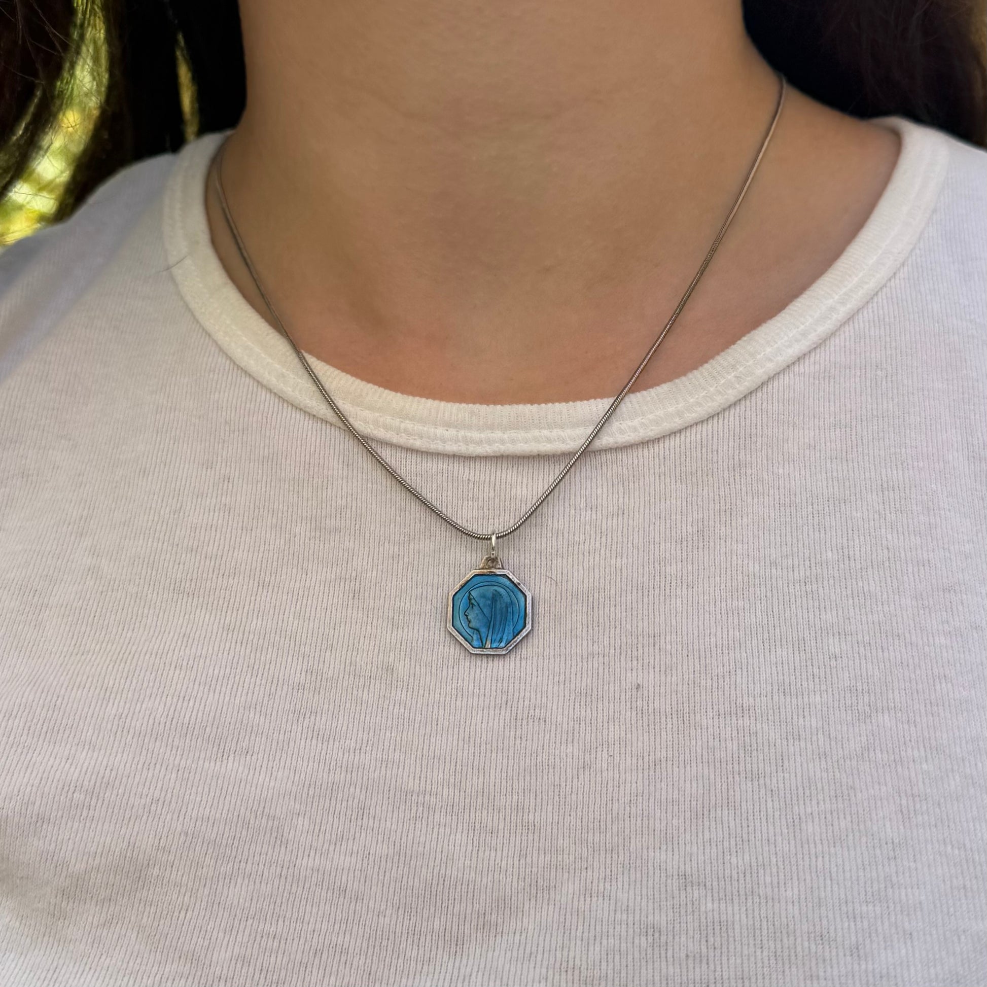 Vintage Sterling Silver Blue Enamel Our Lady of Lourdes Necklace - Sourced in Paris