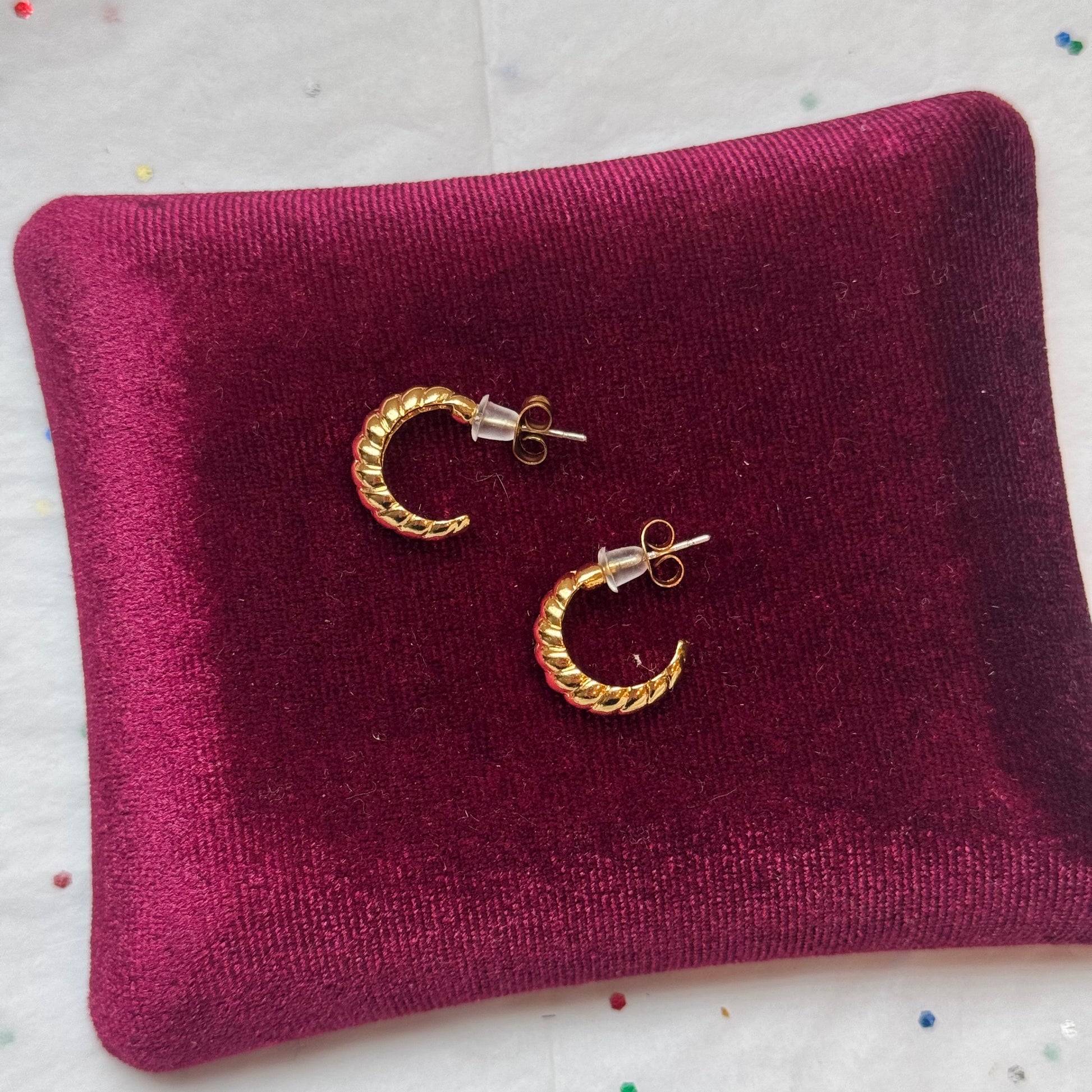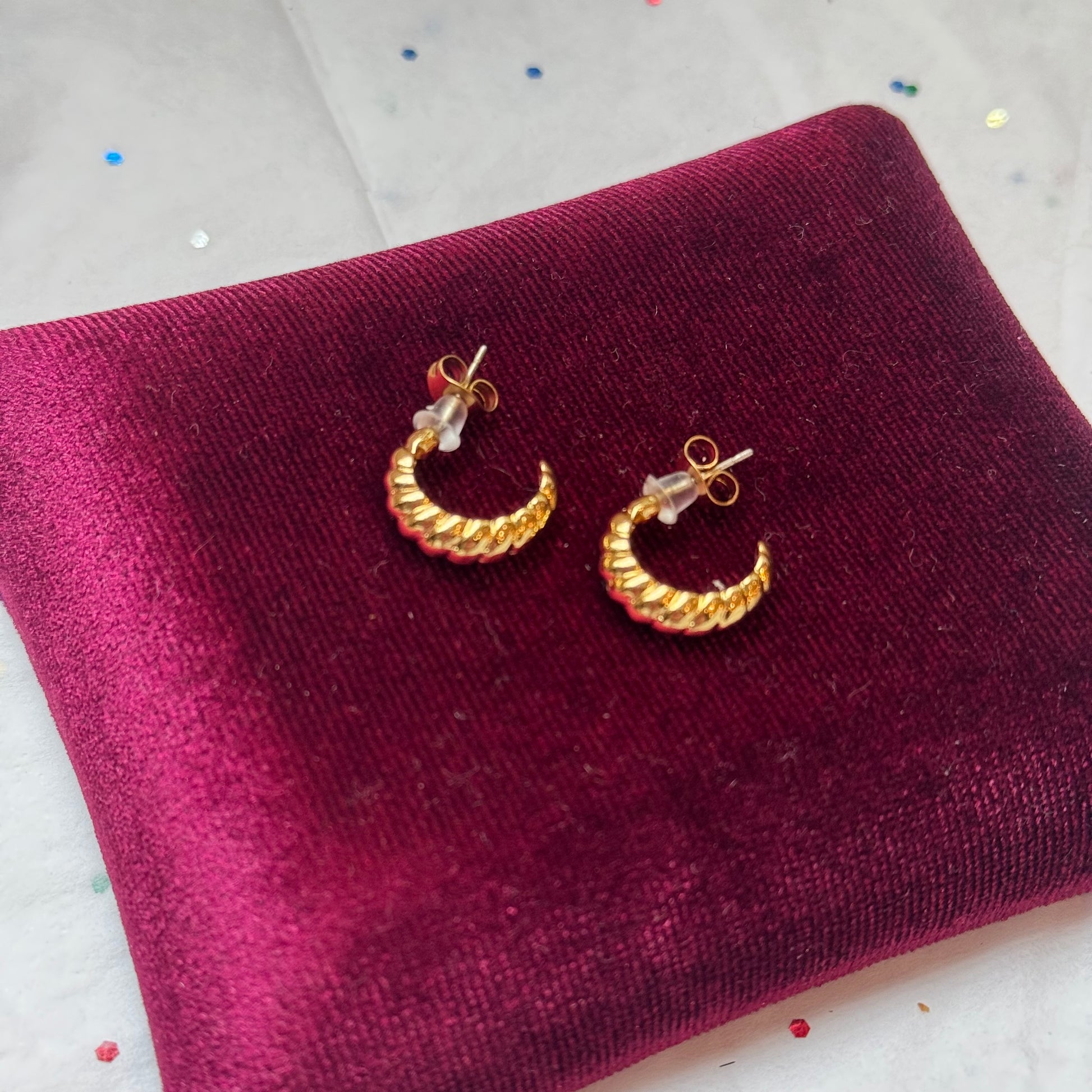 - Vintage inspired gold croissant hoop post earrings for pierced ears