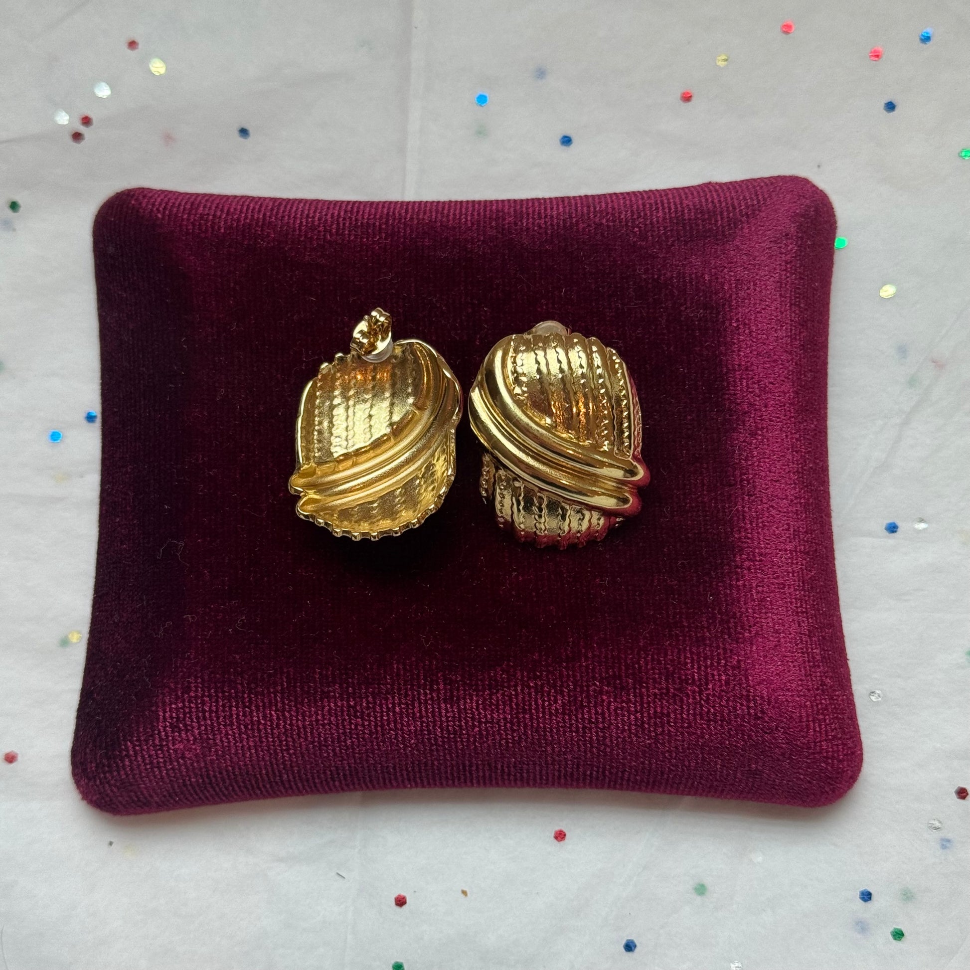 - Vintage inspired gold chunky post earrings for pierced ears