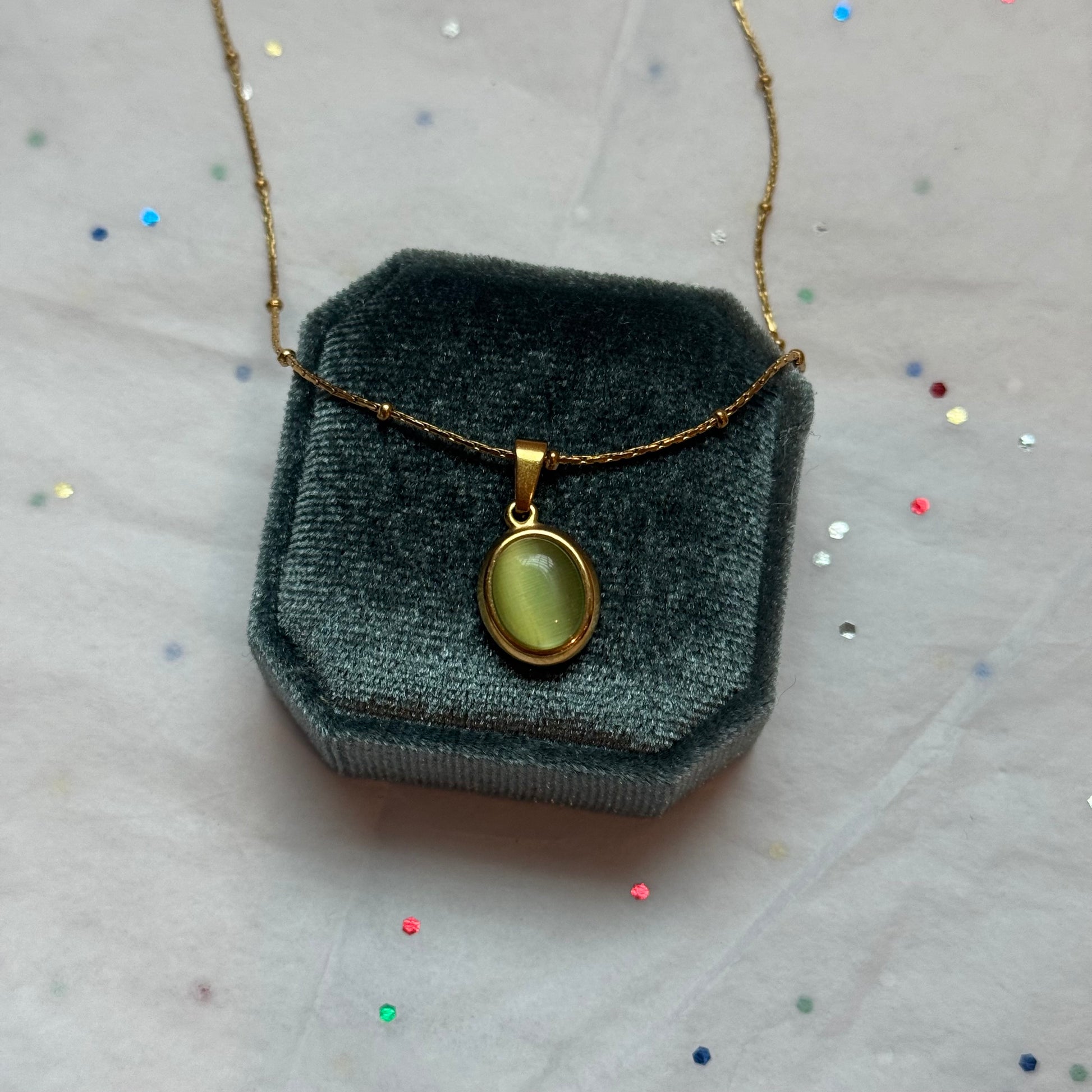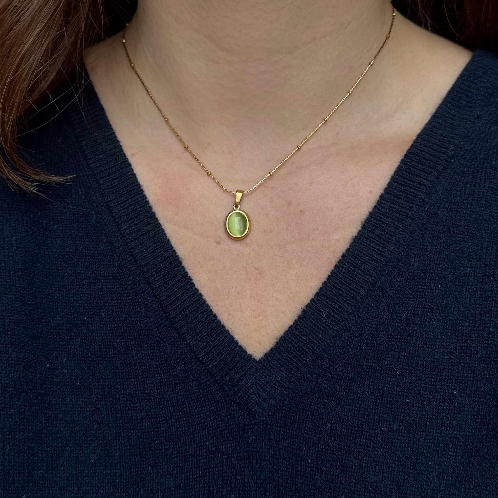 - Vintage inspired Gold pendant necklace with green cabochon stone