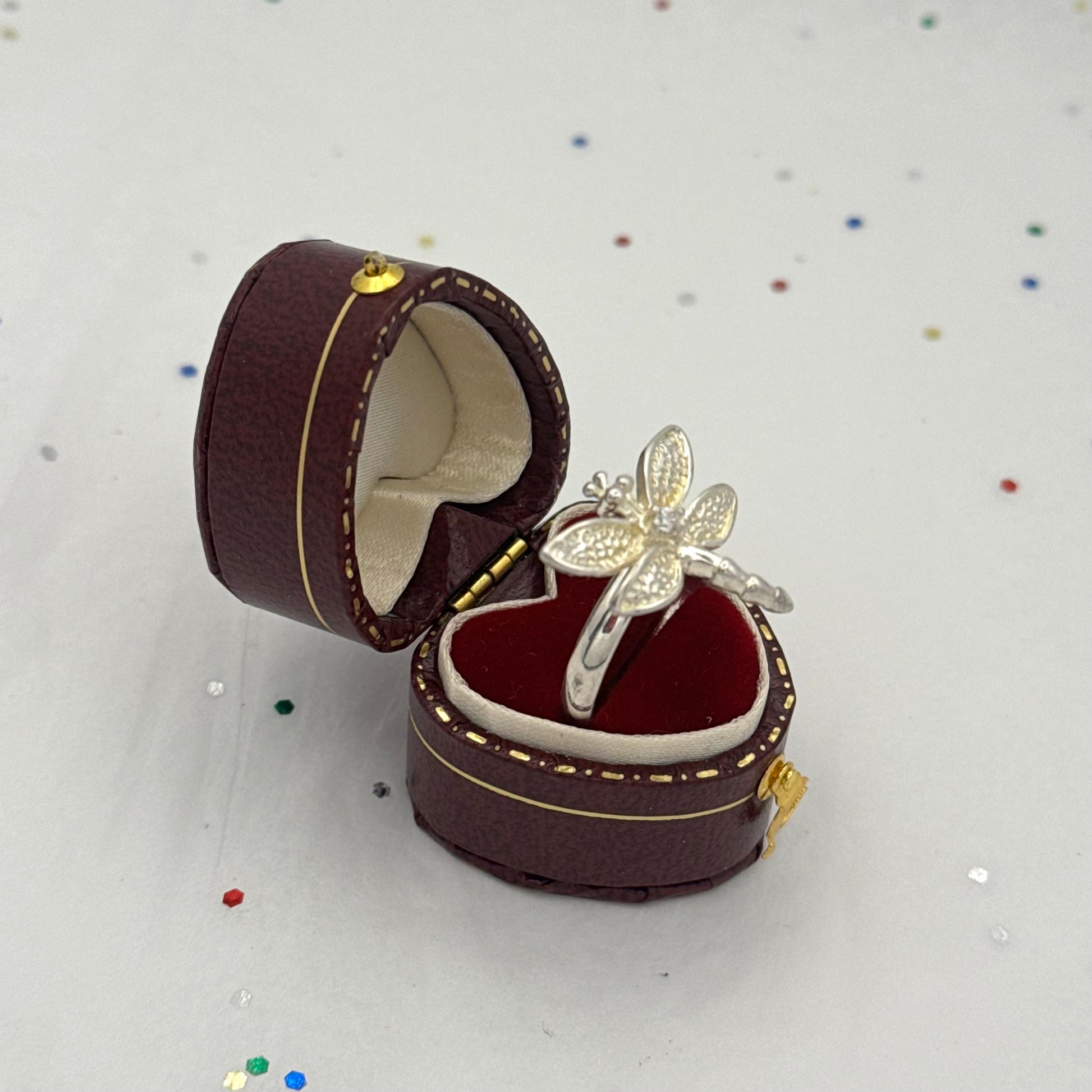 - Vintage Sterling silver dragonfly ring with rhinestone