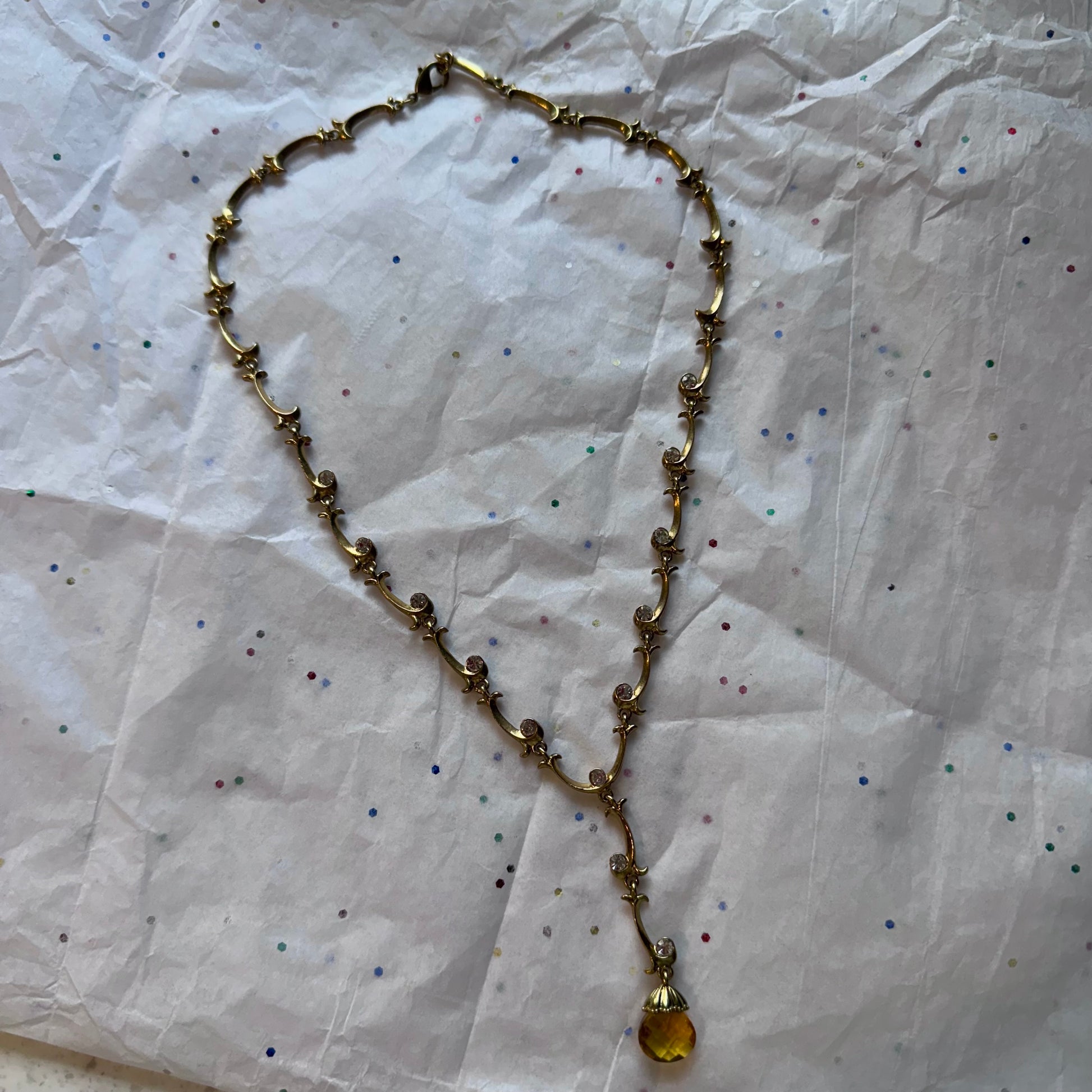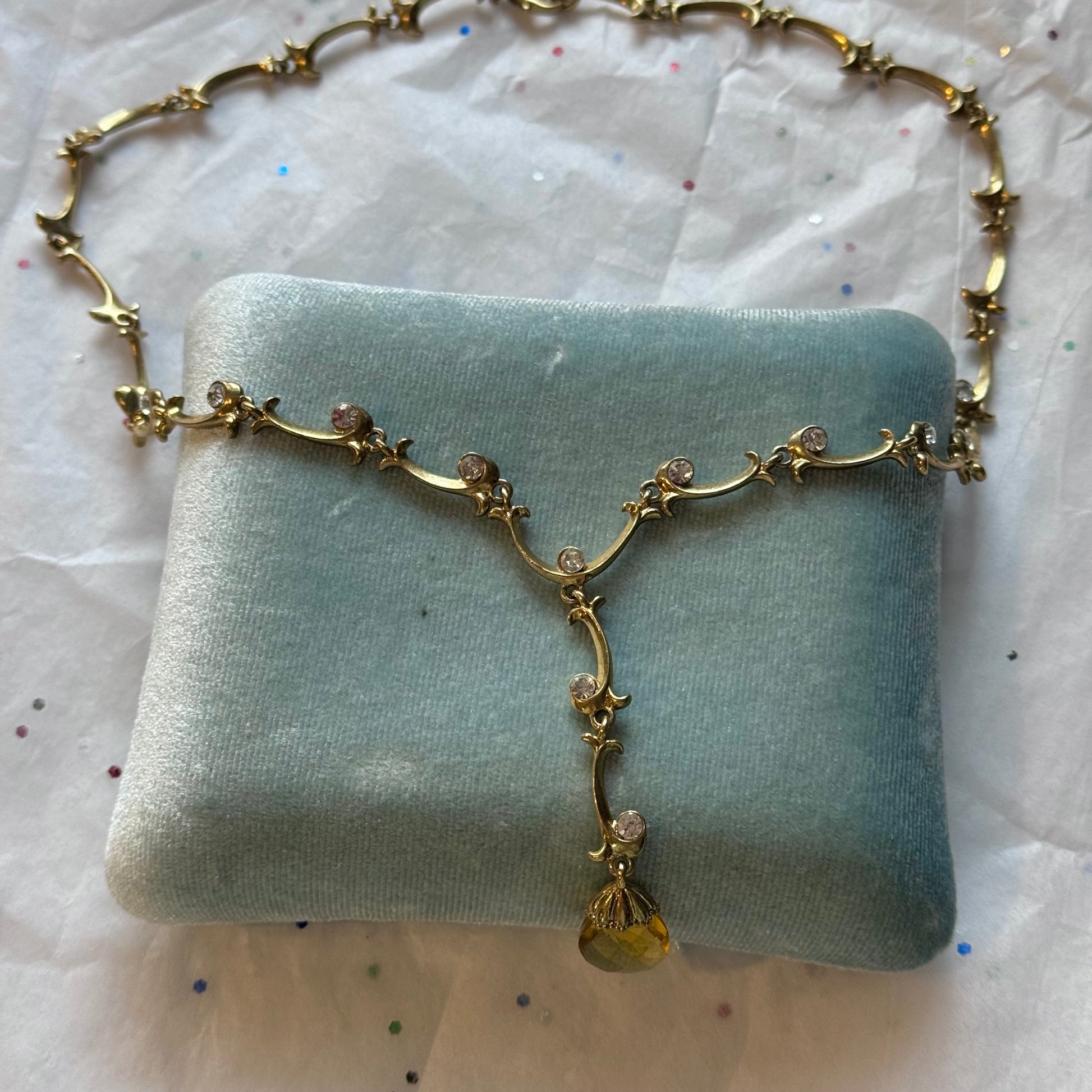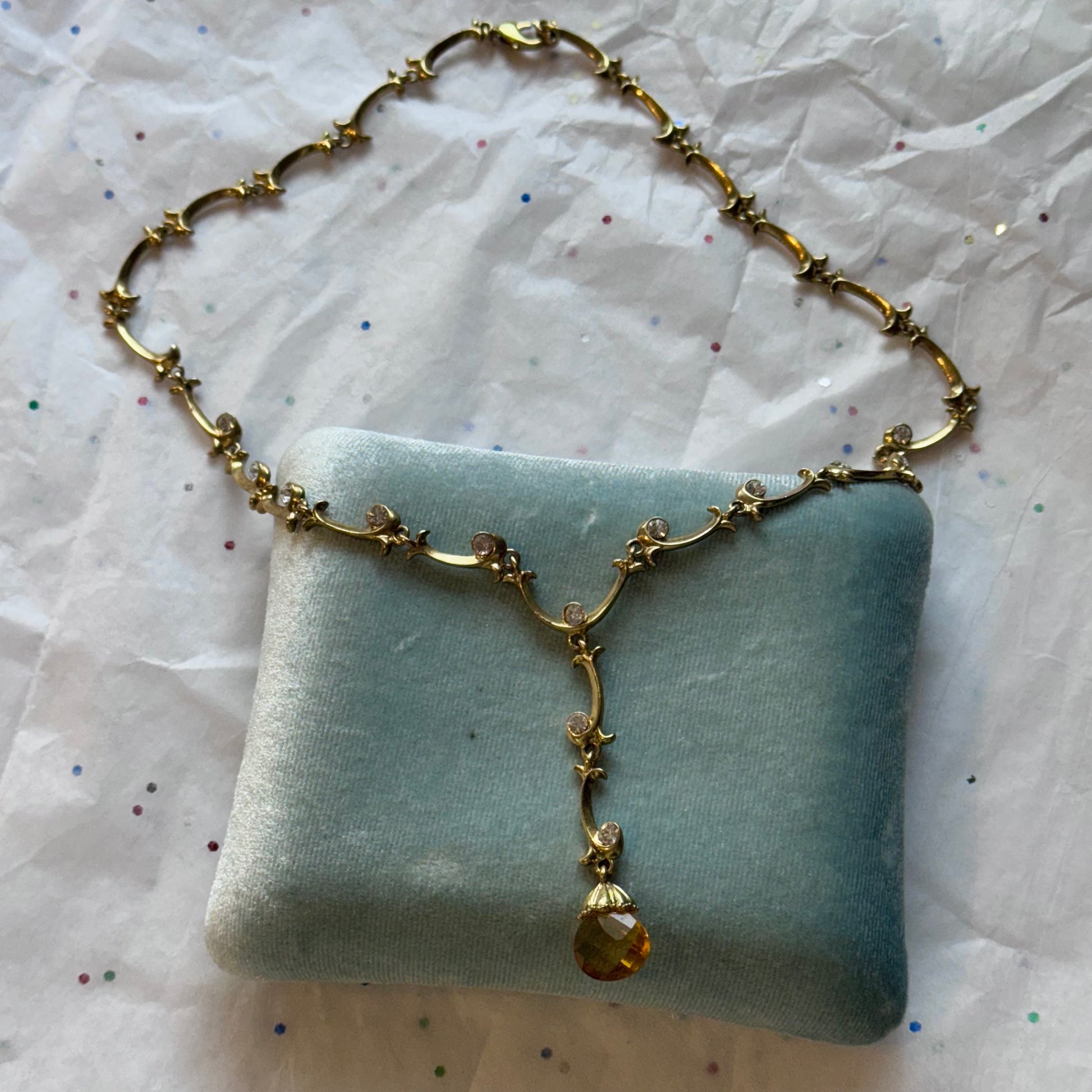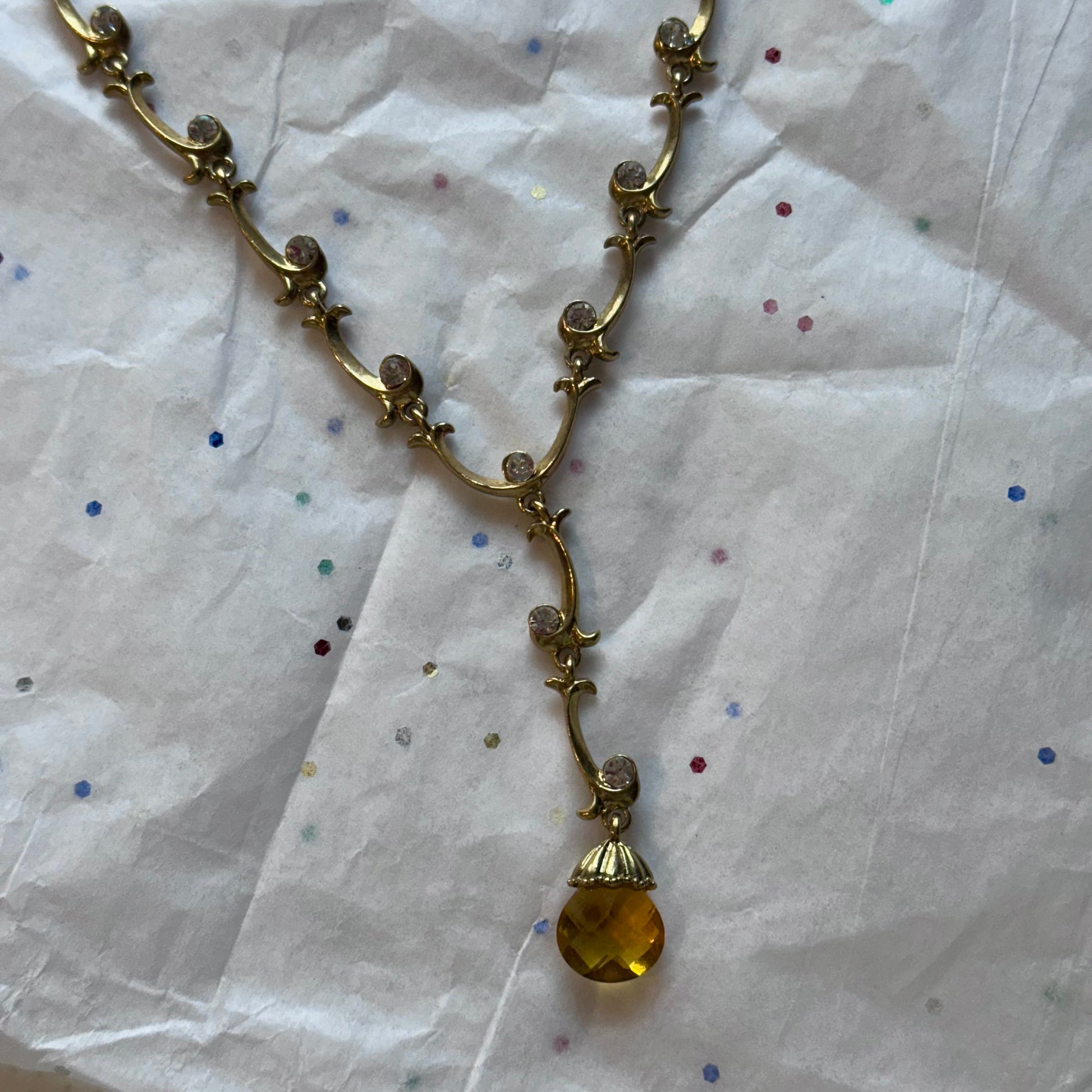 - Vintage gold tone rhinestone teardrop pendant necklace