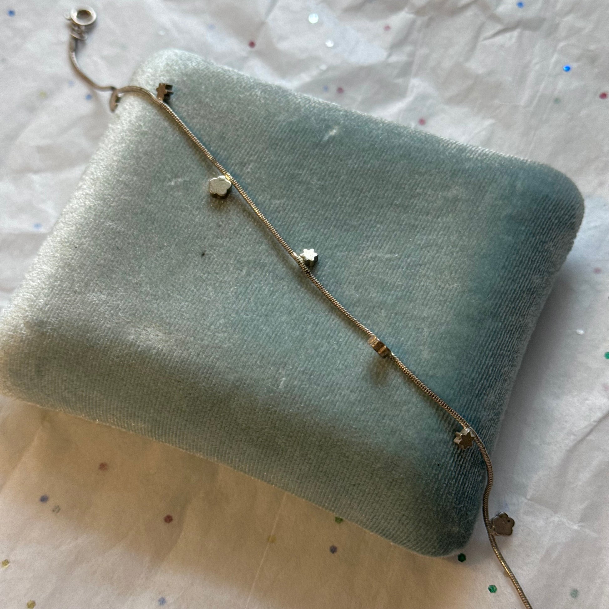 - Vintage silver anklet ankle bracelet with flower embellishments
