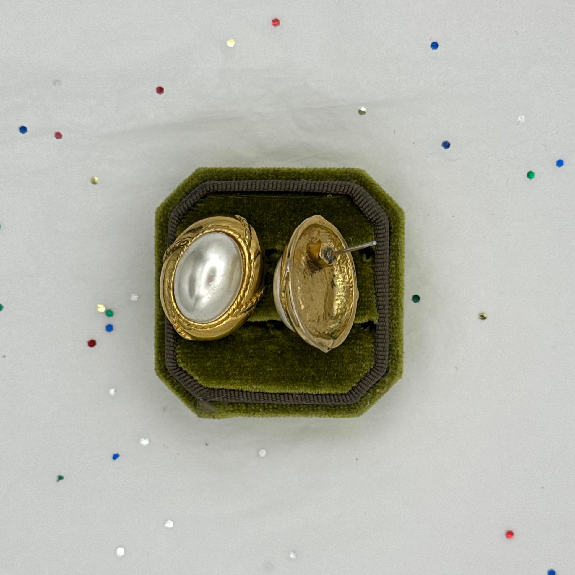 - Vintage gold tone faux pearl post earrings for pierced ears