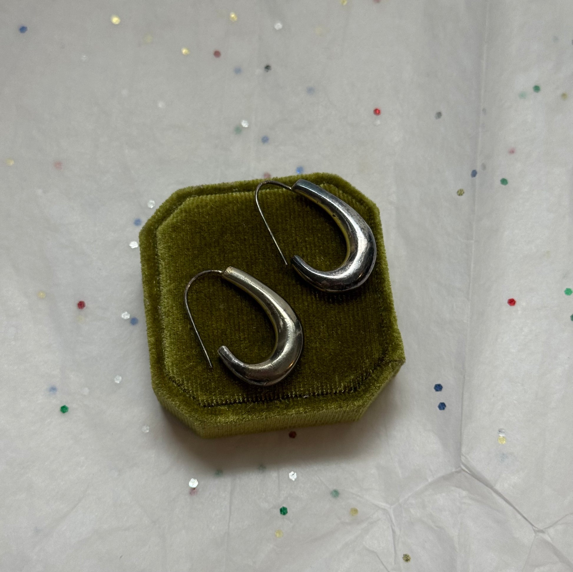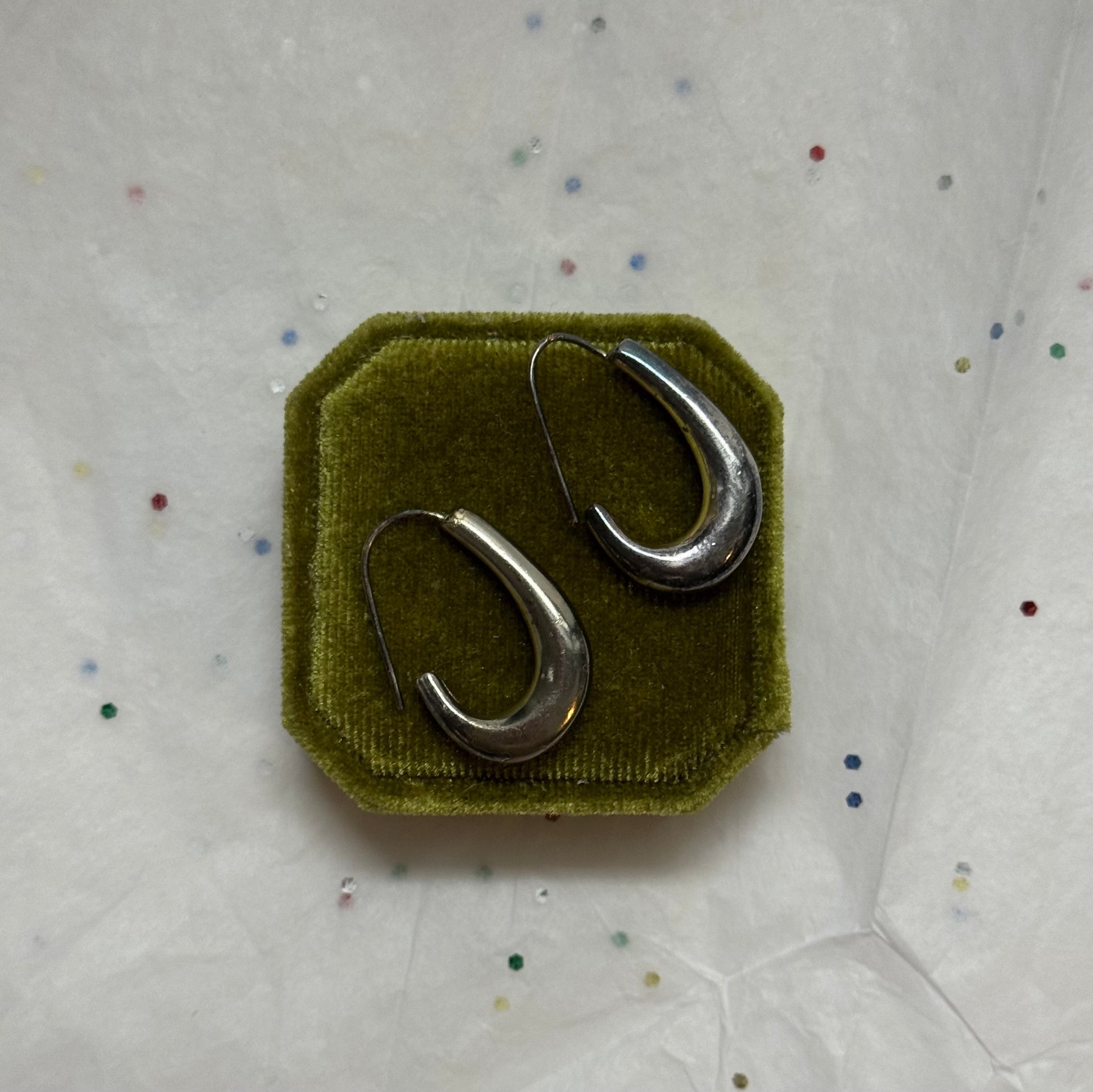 - Vintage sterling silver teardrop hoop post earrings for pierced ears
